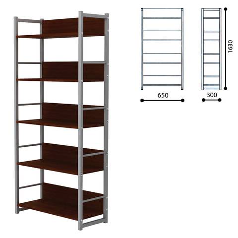 Стеллаж на металлокаркасе, 1630х650х300 мм, серый каркас, 5 полок ЛДСП орех, Д-343